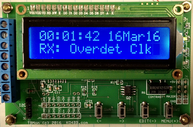 There are 4 LEDs on the board. Two are used to indicate minor and major alarms respectively. Another is used to indicate when the optional WiFi module is linked to your router, the last one indicates when the TB Monitor is connected through the WiFi module (and an IP address is available.)